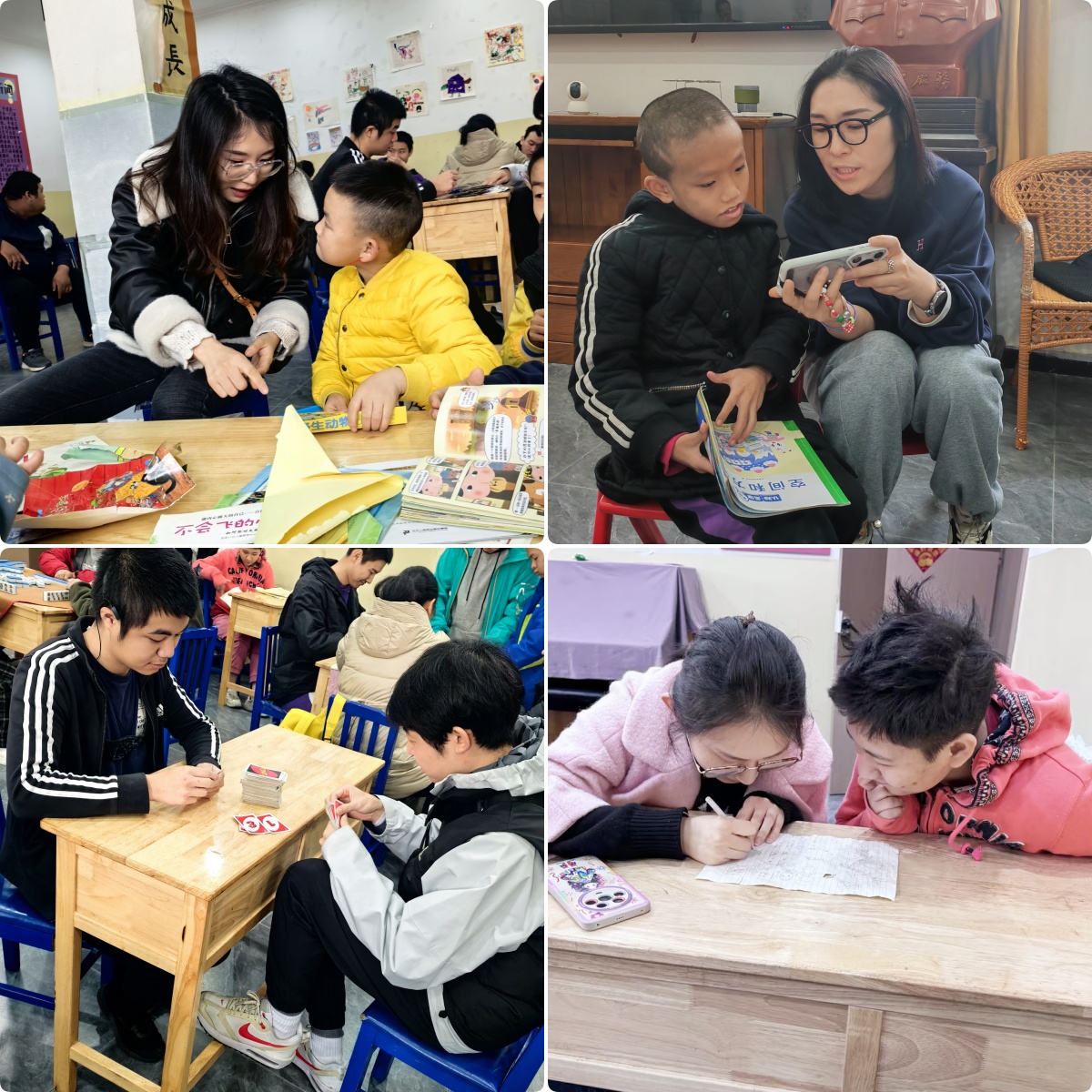 随后,北陆药业的小伙伴们与康复中心的孩子们慢慢互动起来,有的陪伴孩子们阅读,帮助他们打开知识的大门,探索更广阔的世界;有的和孩子们一起写字画画,孩子们的画作充满了想象力和创造力,透露出他们对这个世界的独特理解。有的和孩子们一起玩纸牌游戏,欢声笑语充满了整个康复中心。最后,大家一起动手包饺子,他们将一片片面皮和馅料变成一个个饱满的饺子,为孩子们准备了一顿温馨的午餐。在这样的日子里,每个人的心都被温暖和爱意所填满。